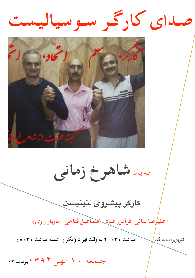 صدای کارگر سوسیالیست ،برنامه ۶۳ ۱۷ مهر ۹۴، تلویزیون دیدگاه رو به ایران این برنامه شامل: میراث شاهرخ زمانی به سوی تقویت کمیته اقدام کارگری علیرضا بیانی/مازیار رازی http://didgah.