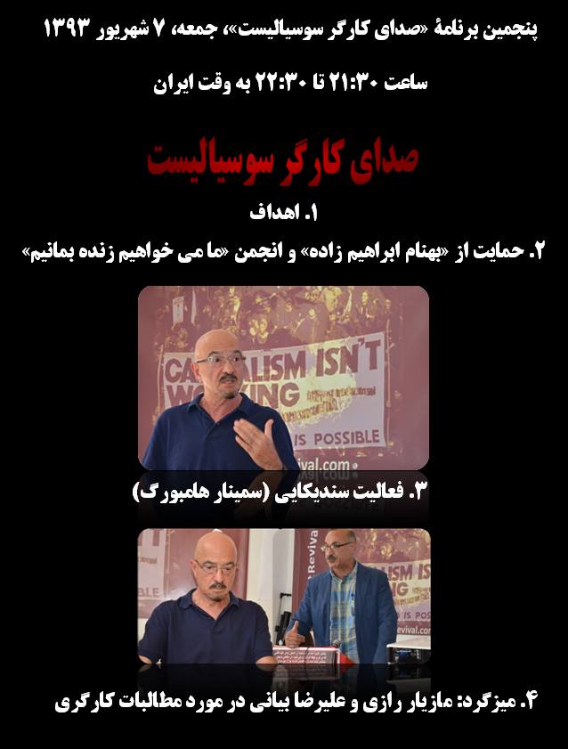تبلیغ برنامه آتی: صدای کارگر سوسیالیست ۵ رو به ایران توسط میلیتانت · منتشر شده آگوست 29, 2014 · بروز شده اکتبر 3, 2014